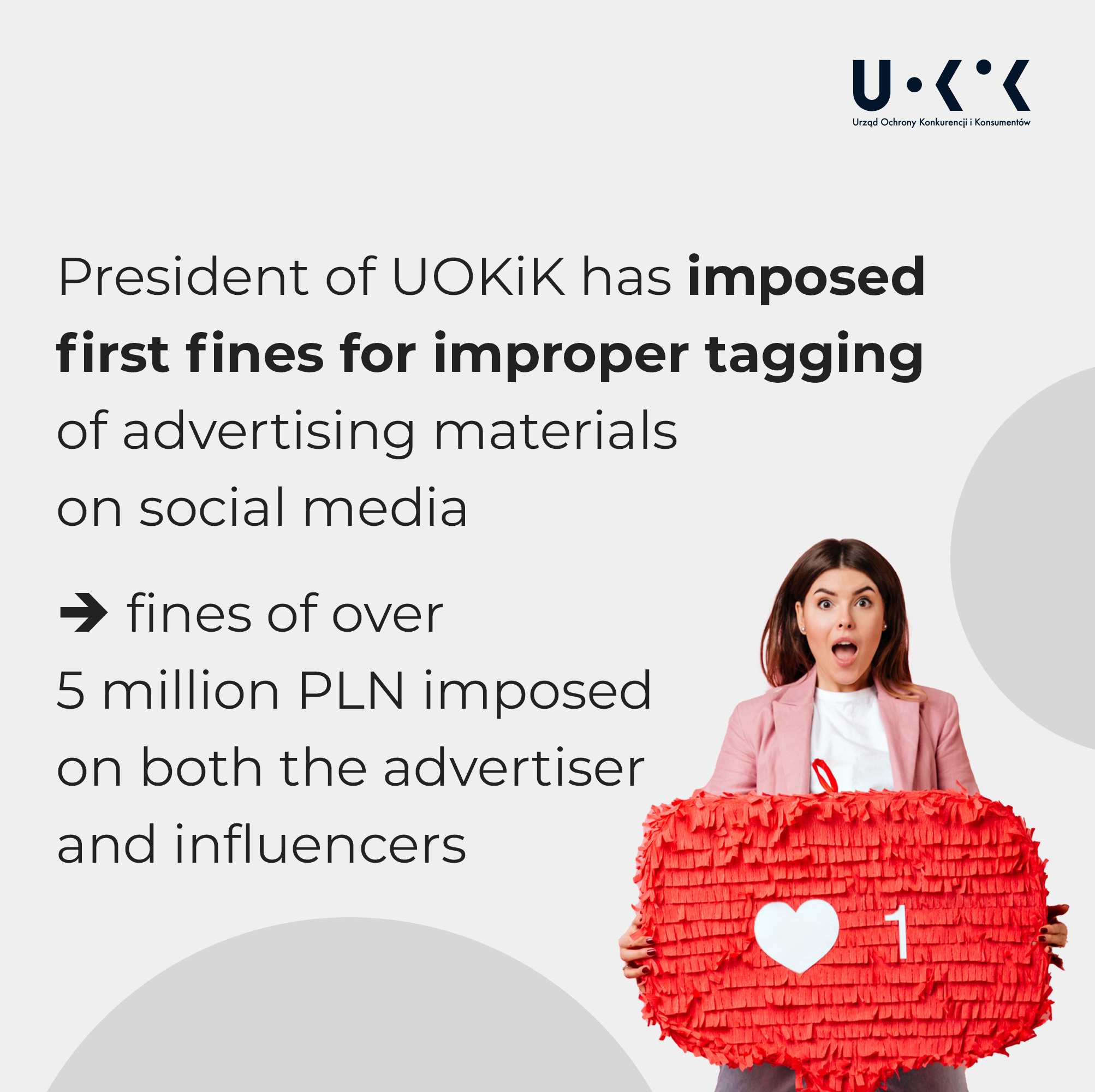 - President of UOKiK Tomasz Chróstny has imposed a fine totaling over 5 million PLN for improper tagging of advertising materials on social media.