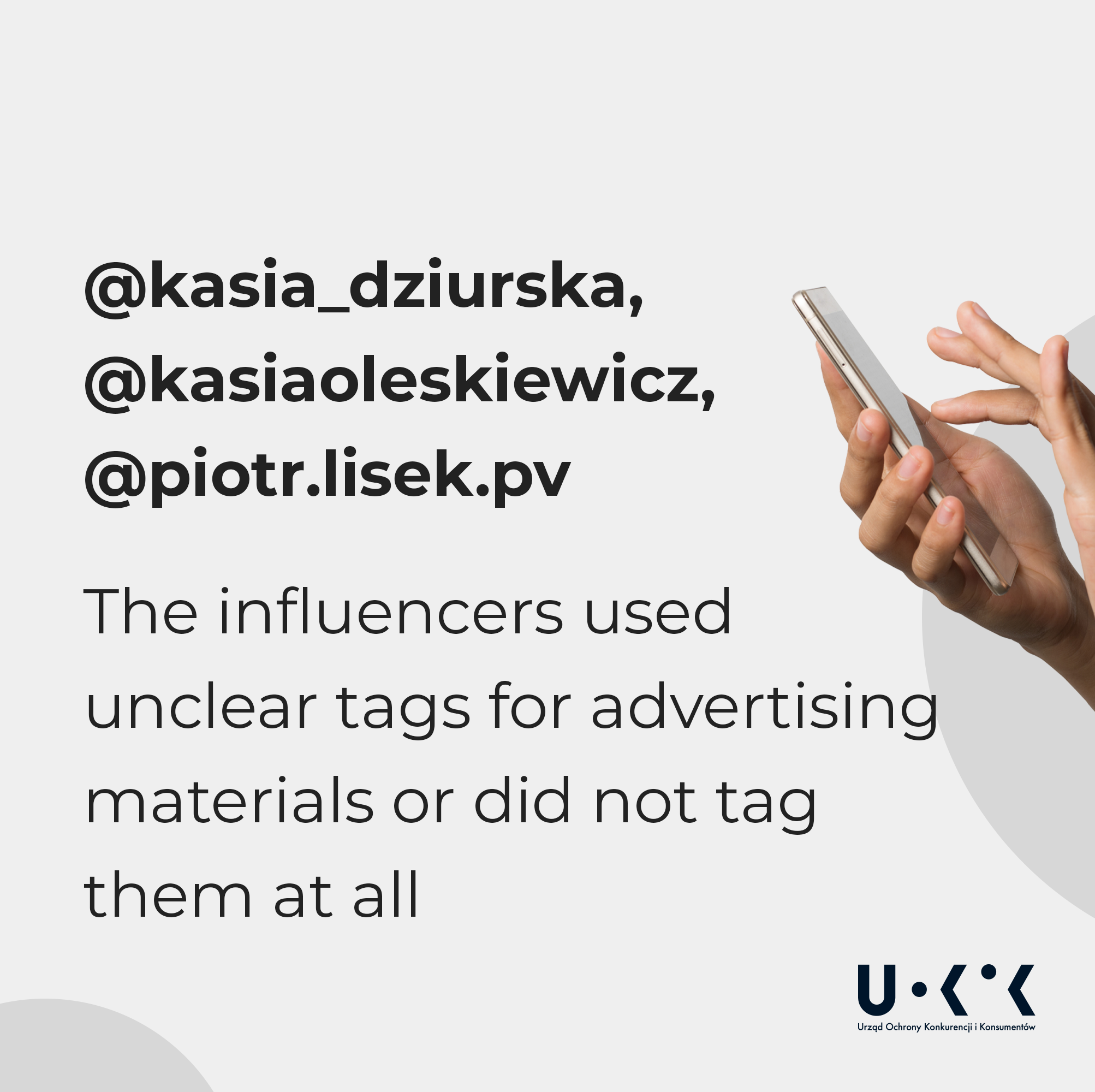 This is how Piotr Lisek (with a fine of more than 23 thousand PLN), Katarzyna Dziurska (fined in 16 thousand PLN), and Katarzyna Ole¶kiewicz-Szuba (with a fine of 5 thousand PLN) worked in promoting products of various companies on their social media. Each of them signalled commercial cooperation with the use of tags referring exclusively to brands of individual advertisers or other designations which did not indicate the commercial nature of the published material – for example, by promoting some products of Olimp Laboratories: “olimpad”. Some content appeared with no indication at all that might have suggested that it was sponsored. Therefore, consumers might have been unable to differentiate which posts or stories were paid for, and which constituted an independent opinion of the influencer on the products presented. Three influencers ceased to apply the challenged practices.